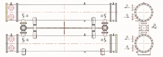 管殼式換熱器采用雙聯(lián)結(jié)構(gòu),由兩只相同面積的冷油器和三通閥裝置構(gòu)成,一只工作,一只備用,每個(gè)冷卻器能承擔(dān)整個(gè)系統(tǒng)的冷卻負(fù)荷,管板一頭固定,一頭浮動(dòng)、可拆卸的管束和水室箱蓋,便于運(yùn)行過(guò)程中清洗、檢查和維修。管殼式換熱器材質(zhì),根據(jù)使用場(chǎng)所、水系統(tǒng)條件可有多種選擇。